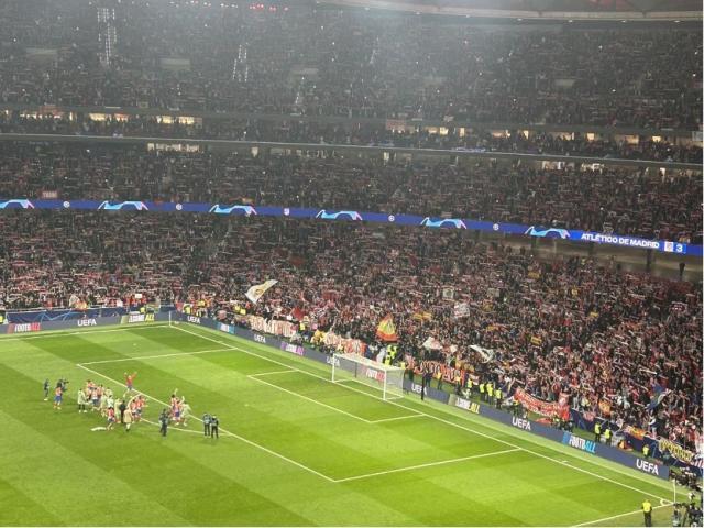 当劳塔罗罚失本队最后一个点球,马竞主场大都会球场陷入彻底的沸腾,全场球迷第五次集体举起手里的围巾,高声唱响马竞队歌,而这一次无疑是最幸福的一次。之前的四次分别发生在比赛开始前的例行高唱队歌环节,以及常规时间快结束时为球队的加油鼓劲,加时赛上半场结束后,马竞队歌再一次响彻全场,点球大战开始前,全场球迷再度集体高唱队歌。而在点球大战期间国米球员走上前主罚点球时,响彻全场的嘘声给足了对手压迫感,如此压力之下,桑切斯与克拉森的点球均被奥布拉克扑出,劳塔罗非进不可的点球更是直接飞上了看台。